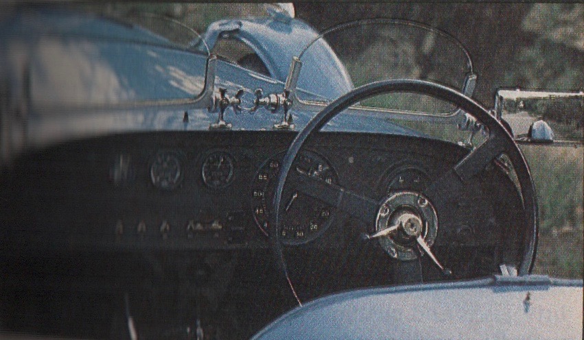 “The view forward,” Henry reported, “over a couple of classic Brooklands screens is vintage indeed, especially with the headlamps and radiator shell as scenery. The rad cap is typically English, having a sort of trombone spit key to bleed off vapors before a little screw is removed to release the lid, but the fuel filler is a massive flyoff affair looking as if it came off a steam loco.”