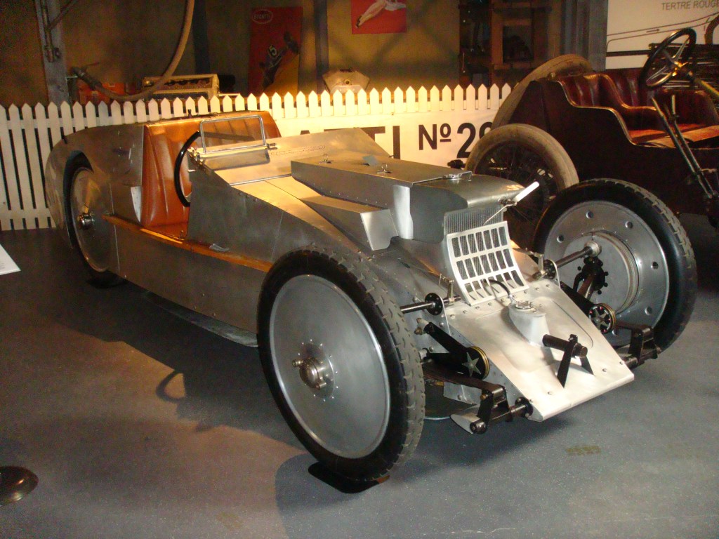 The Laboratoire displayed other innovations beyond its monocoque structure. Panels were of lightweight aluminum. Its narrow rear track eliminated need for a differential. The little propeller up front powered the engine’s water pump. Unlike the Bugatti Type 32’s, the Laboratoire’s front tires were left exposed to enhance the driver’s cornering judgement.