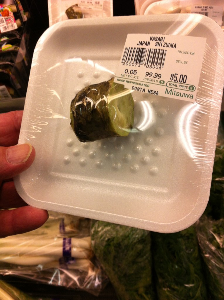 I CAN’T SAY I didn’t see this coming: Back on March 28, 2014, I was shopping at Mitsuwa, my local Japanese market, and marveled at the price/lb. of fresh wasabi: $99.99.