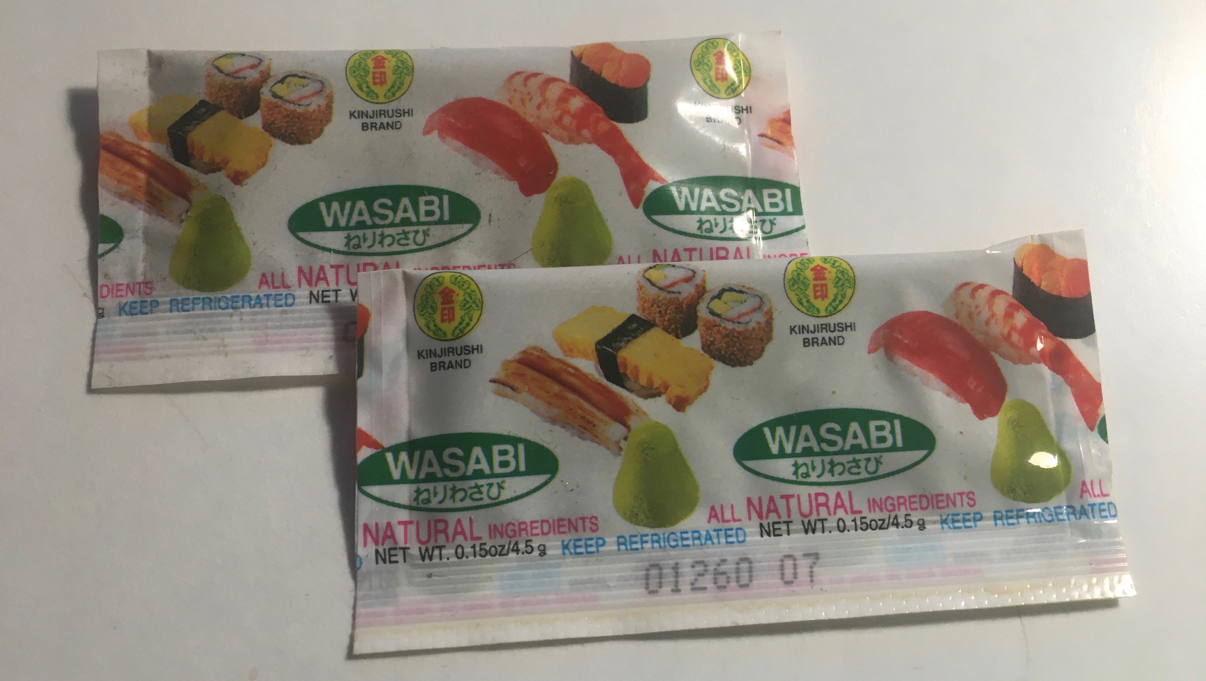 Rich and Inoue prompted me to catch up on wasabi futures. And to perform taste tests with my $199.99 fresh wasabi, its $22.69 tube counterpart, and one of my gratis packets included with a previous sushi order.