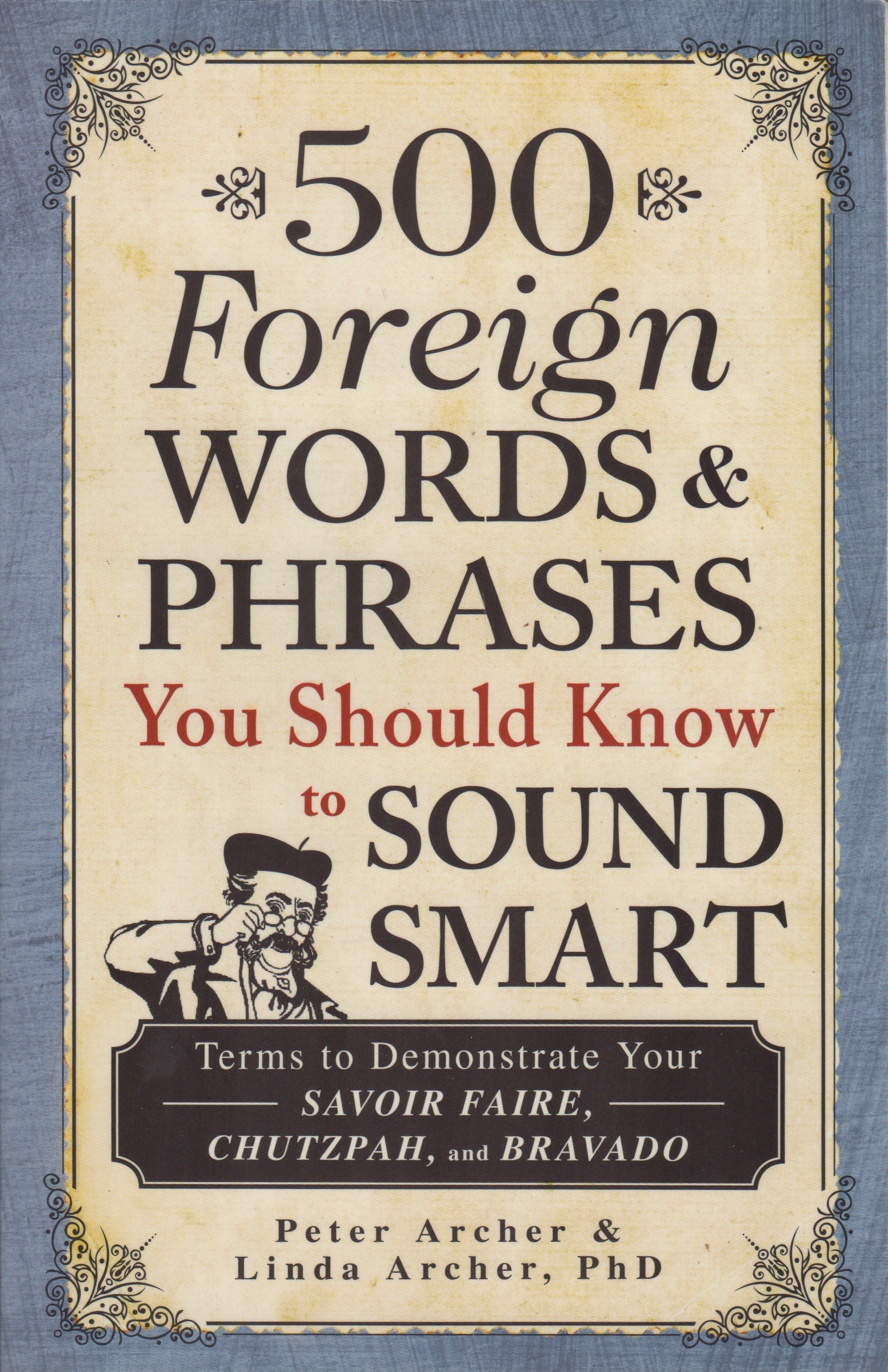 500 Foreign Words & Phrases You Should Know to Sound Smart: Terms to Demonstrate Your Savoir Faire, Chutzpah, and Bravado, by Peter Archer and Linda Archer, Ph.D., Adamsmedia, 2012.