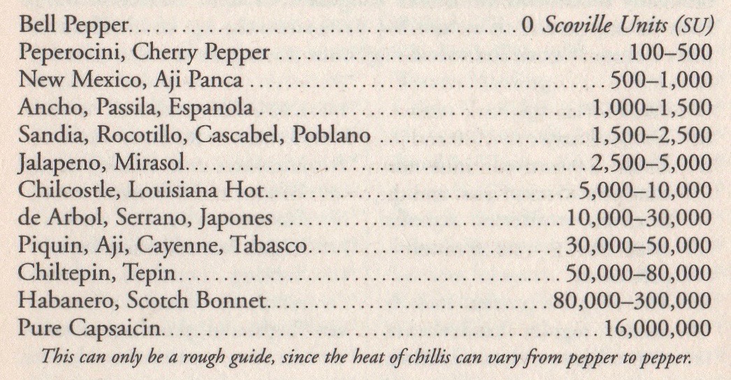 The Scoville Scale. “In 1912,” Schott says, “Wilbur Scoville developed his now famous method to chart the comparative heat of different chillis (J. Am. Pharm. Assoc. 1912; 1:453-4).
