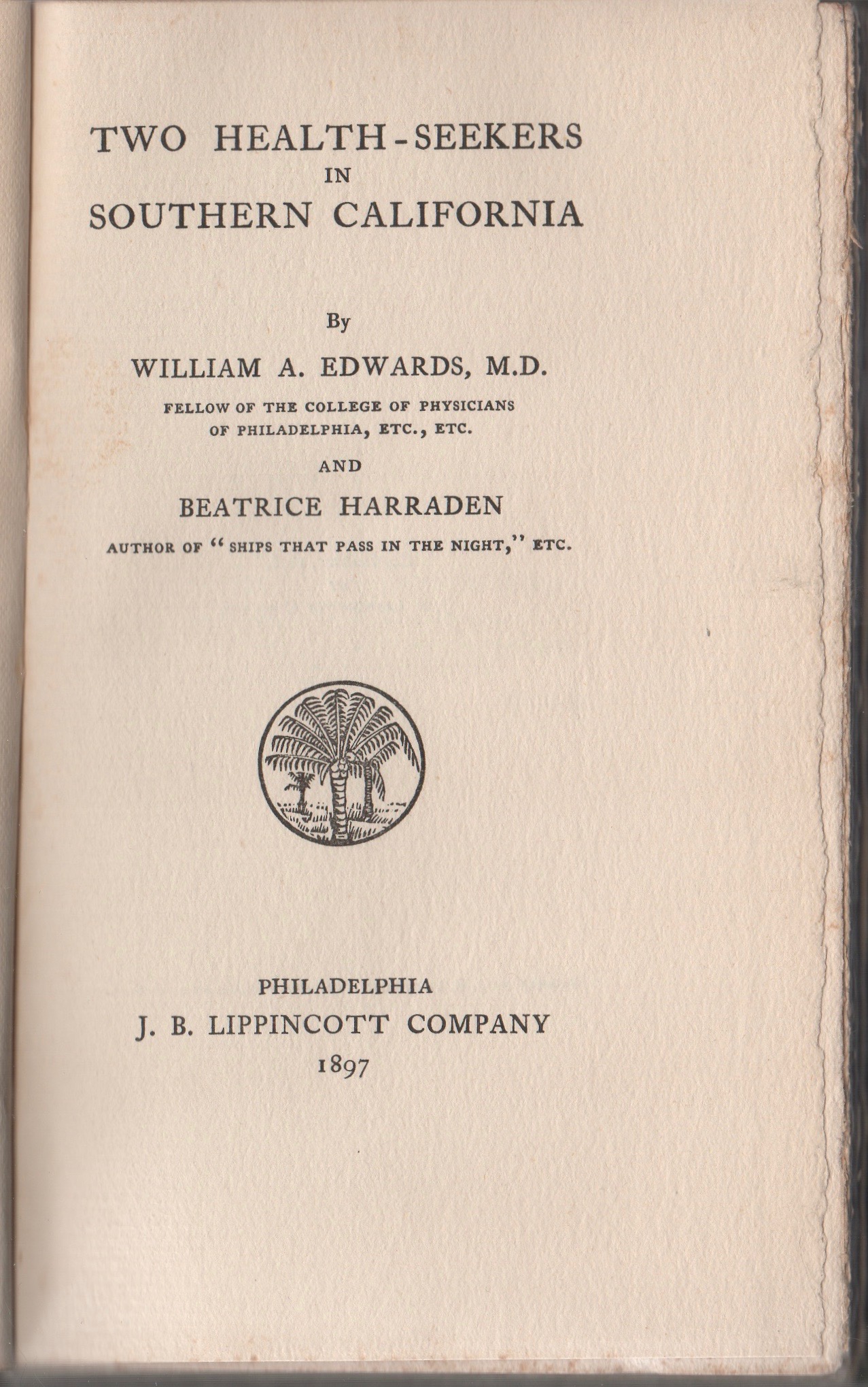 I BOUGHT MY Two Health-Seekers in Southern California because it was particularly bright for a book published in 1897. Plus, who’s not to like seeking health in Southern California, even today.