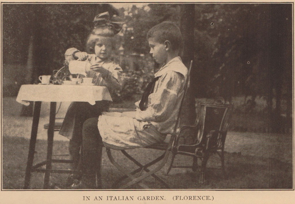 “After we had gone up to our rooms, I ran to the balcony to see how it looked out of doors so late at night, and heard the strains of a mandolin and guitar. There were two men, and a little girl about my age (who should have been in bed two hours before). Both men were playing, one was singing, and the little girl was picking up coins that were thrown from windows and balconies.”