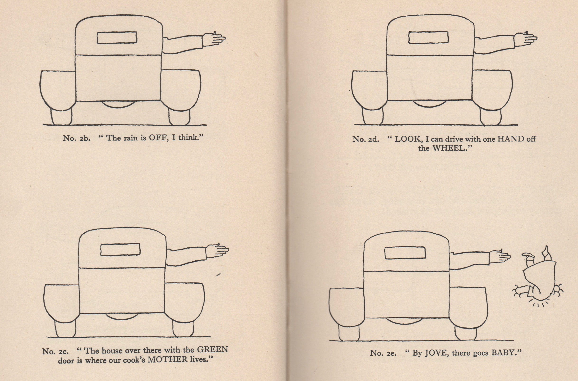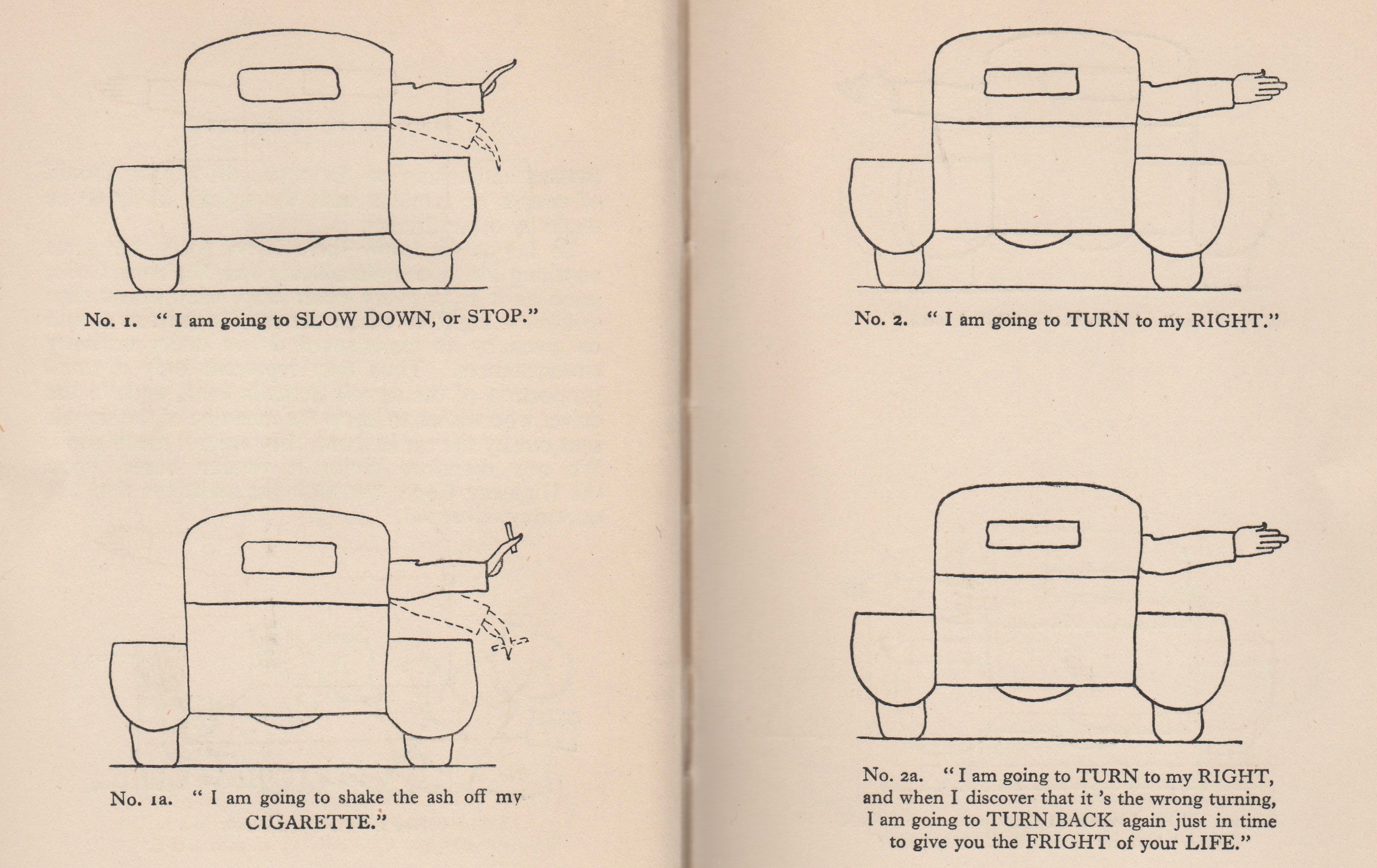 Driver Signaling. “Before embarking on the road,” McCullough advises, “the novice should of course be familiar with the signals to be made by other drivers.