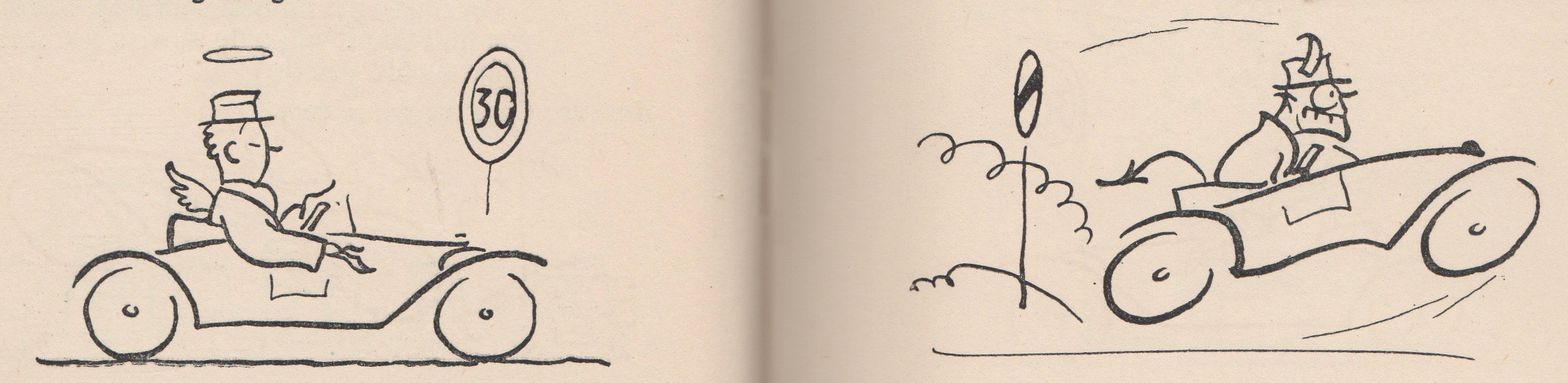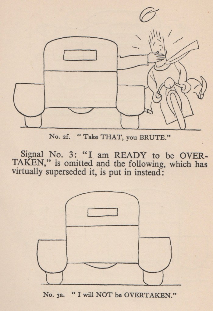 Donald McCullough writes, “The intended road-user, to get the fullest enjoyment from his pursuit (as it usually becomes), should begin with the study of the Highway Code. This is the Road-User’s Statute of Liberty and Magna Carta of the Road, price one penny. It is also the little blue book that used to lie on the hall table.”