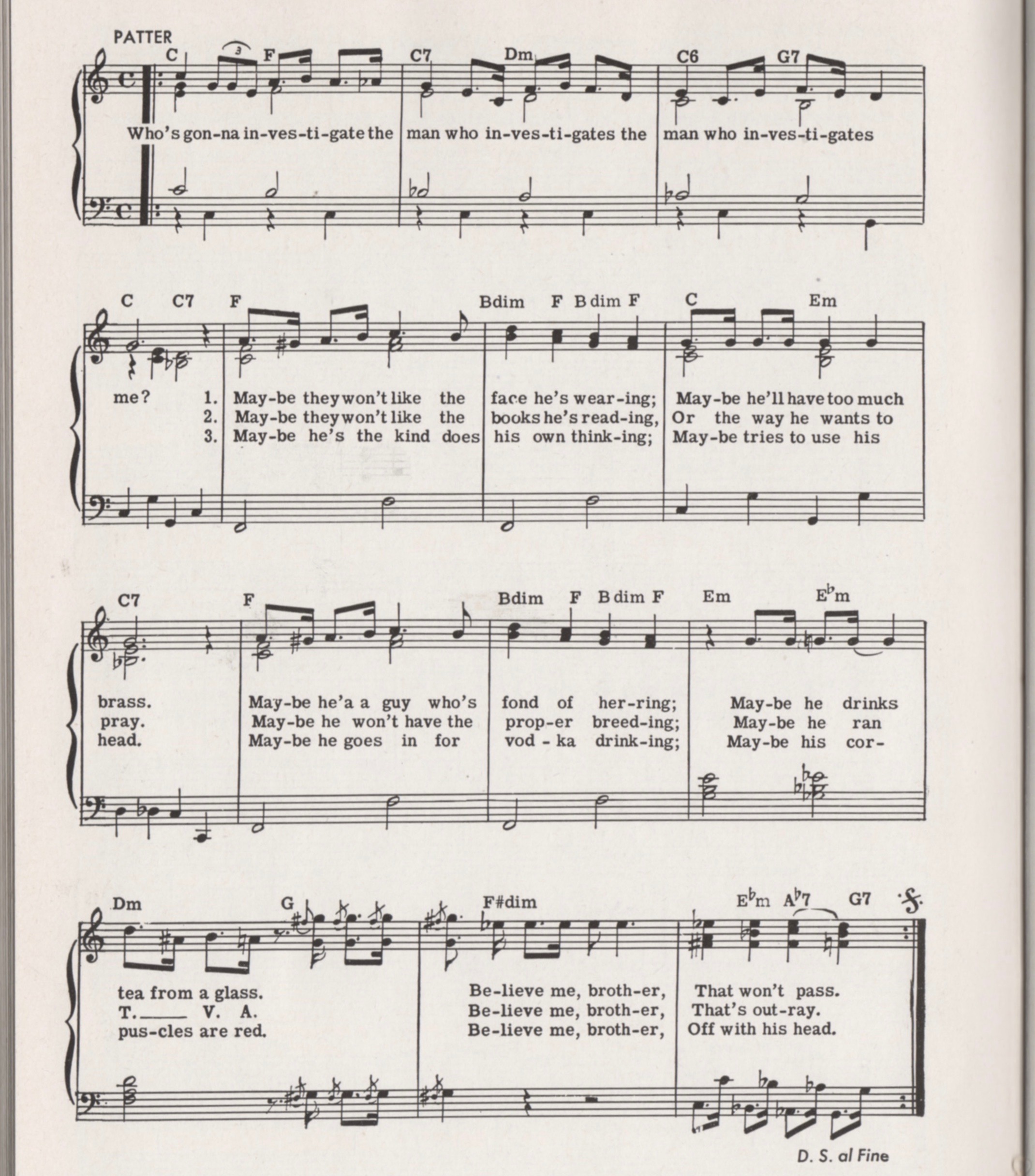 Do I hear this song resounding in these Covid times? Or is it the House Un-American Activities Committee at the door? ds
