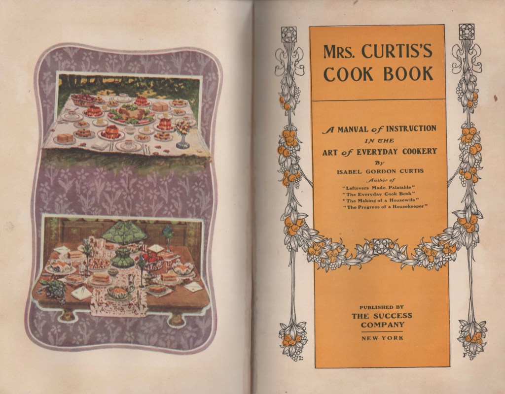 The second portion of Household Discoveries and Mrs. Curtis’s Cook Book , by Sidney Morse and Isabel Gordon Curtis, The Success Company, 1909.