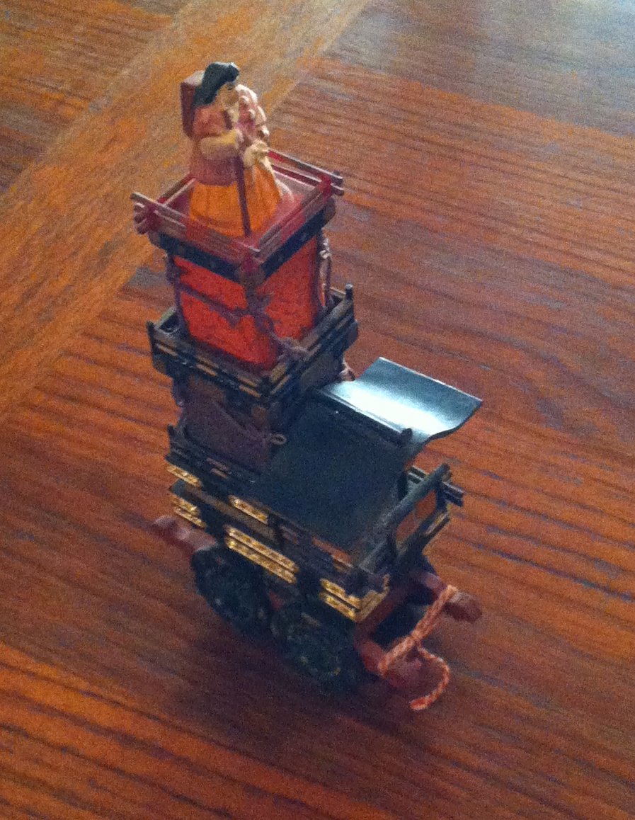 Mitsukuni noted that Japan’s earliest rulers and their immediate families “did not ride in carriages on wheels, but were carried in covered or open palanquins (koshi) shouldered by several bearers.”