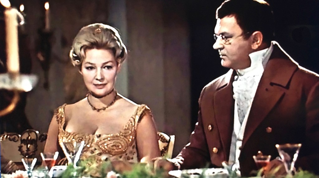Bondarchuk and Irina Skobtseva. Wikipedia notes that Bondarchuk “met his second wife Irina Skobtseva when both were appearing in the film Othello, 1955, and they were married in 1959. In War and Peace, she played Hélène Kurigina, Pierre’s first (and problematical) wife.