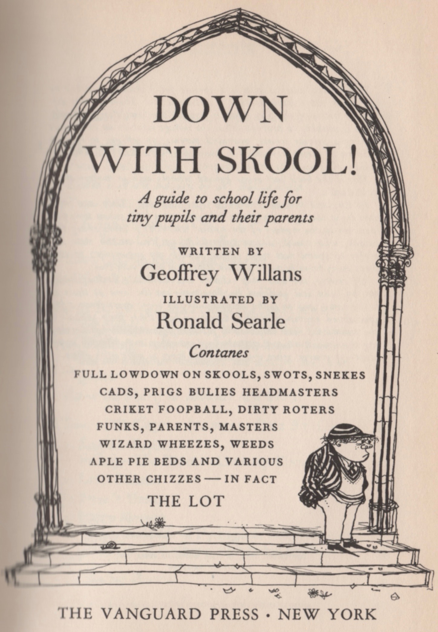 NOW THAT KIDS ARE returning, sorta, to traditional schooling, maybe it’s time to bring some humor, er… humour to the educational process. I do this in vintage fashion, by examining Down with Skool, written in 1954 by Geoffrey Willans and illustrated by the incomparable Ronald Searle.