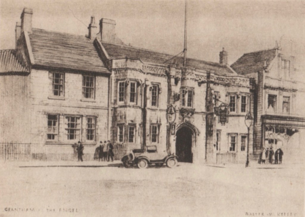 Colville Wemyss wrote, “In the same very select group of old inns as ‘The George’ at Glastonbury, Grantham’s ‘Angel’ was first a pilgrims’ hostel, then a famous resting place for sixteenth-century travellers, one of the great coaching inns of the North Road, and finally a large, prosperous hotel of the twentieth century.”