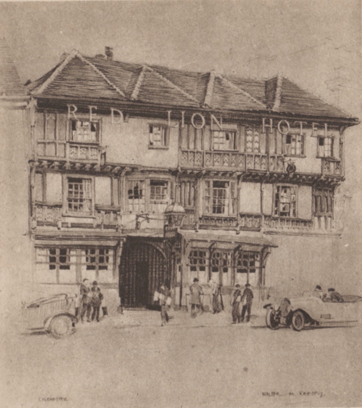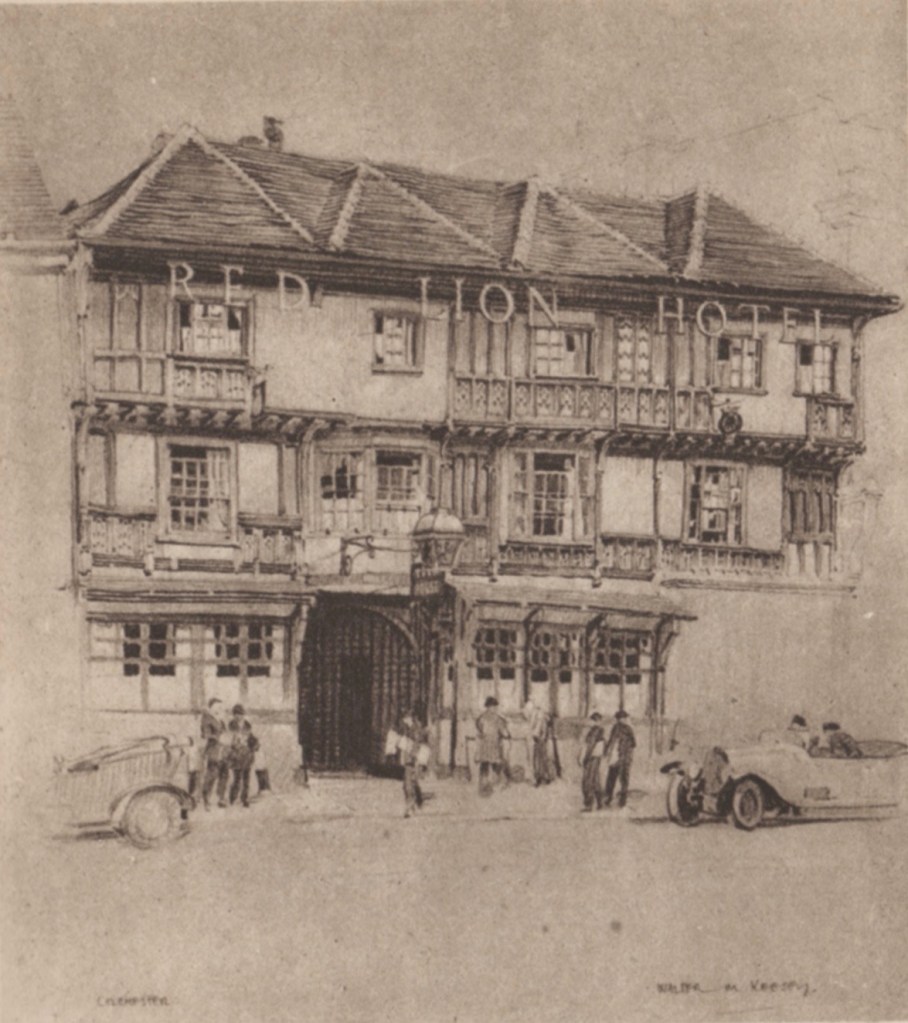 The Red Lion. Tales wrote that the Red Lion stands on the remains of a luxurious villa built during Roman times. “But there is a gap in the Red Lion’s story of perhaps a thousand years, years that saw raiding pirate Danes clamour at its walls, saw the coming of the Conqueror and the building, a stone’s throw away, of the biggest Norman keep in the land, the growth of a flourishing medieval town—and here we pick up the Red Lion’s story again.”