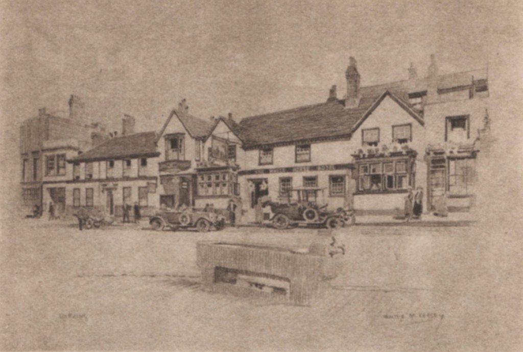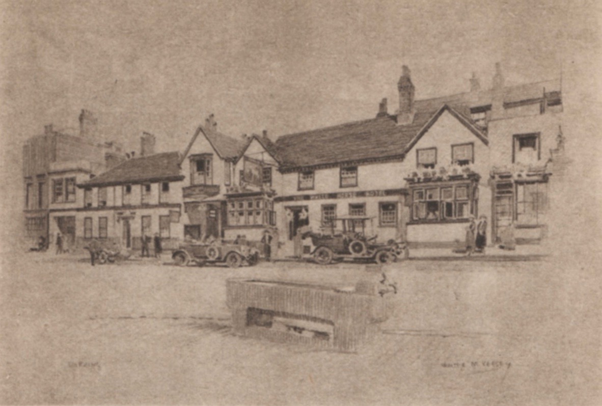 Tales observed, “Three centuries at least have combined to disguise the original beauties of the Flying Horse and have largely failed…. the sixteenth century saw that rased to the ground, and a modern erection built upon the old foundations. That modern erection is the present-day [1927] Flying Horse.”
