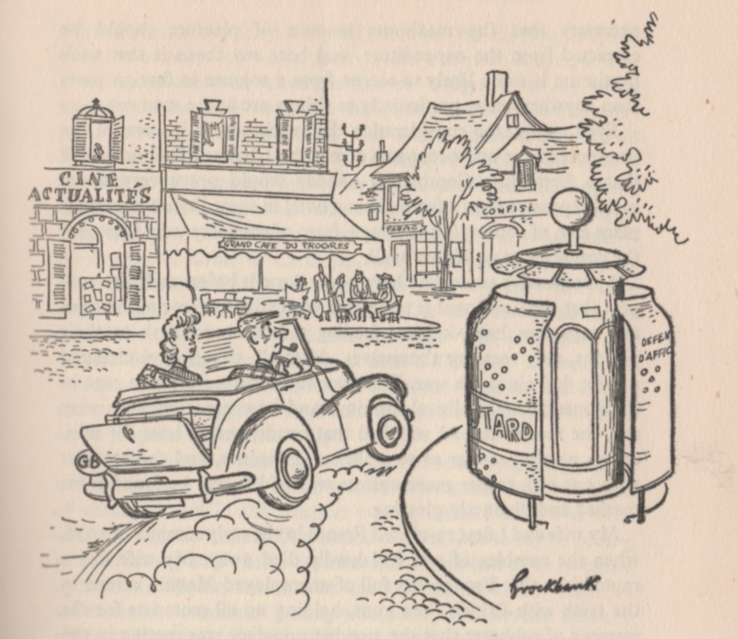 “It is a maddening, even somewhat alarming place to drive about in,” Walkerley observed, “until you get the swing of the thing, one of the considerations being that as distinct from, say, London, where the police are a little shocked if you get a move one, the Paris flics blow whistles, wave rolling pins and do a little dance of agitation if you don’t step on it smartish….”