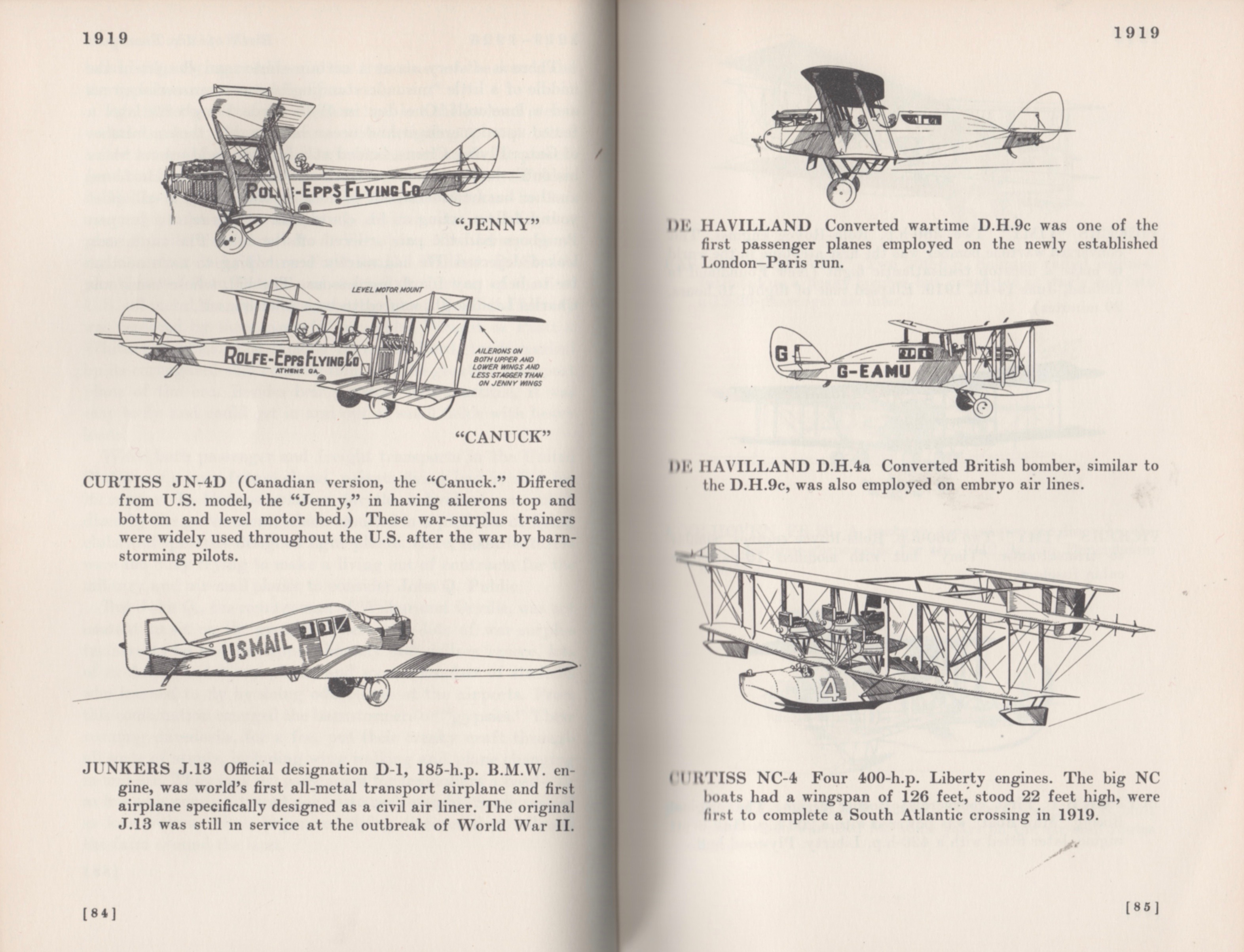 1919 Navy Curtiss NC-4. World War I greatly accelerated the pace of aircraft development. The 1919 Curtiss flying boat had “Four 400-h.p. Liberty engines. The big NC boats had a wingspan of 126 feet, stood 22 feet high….”