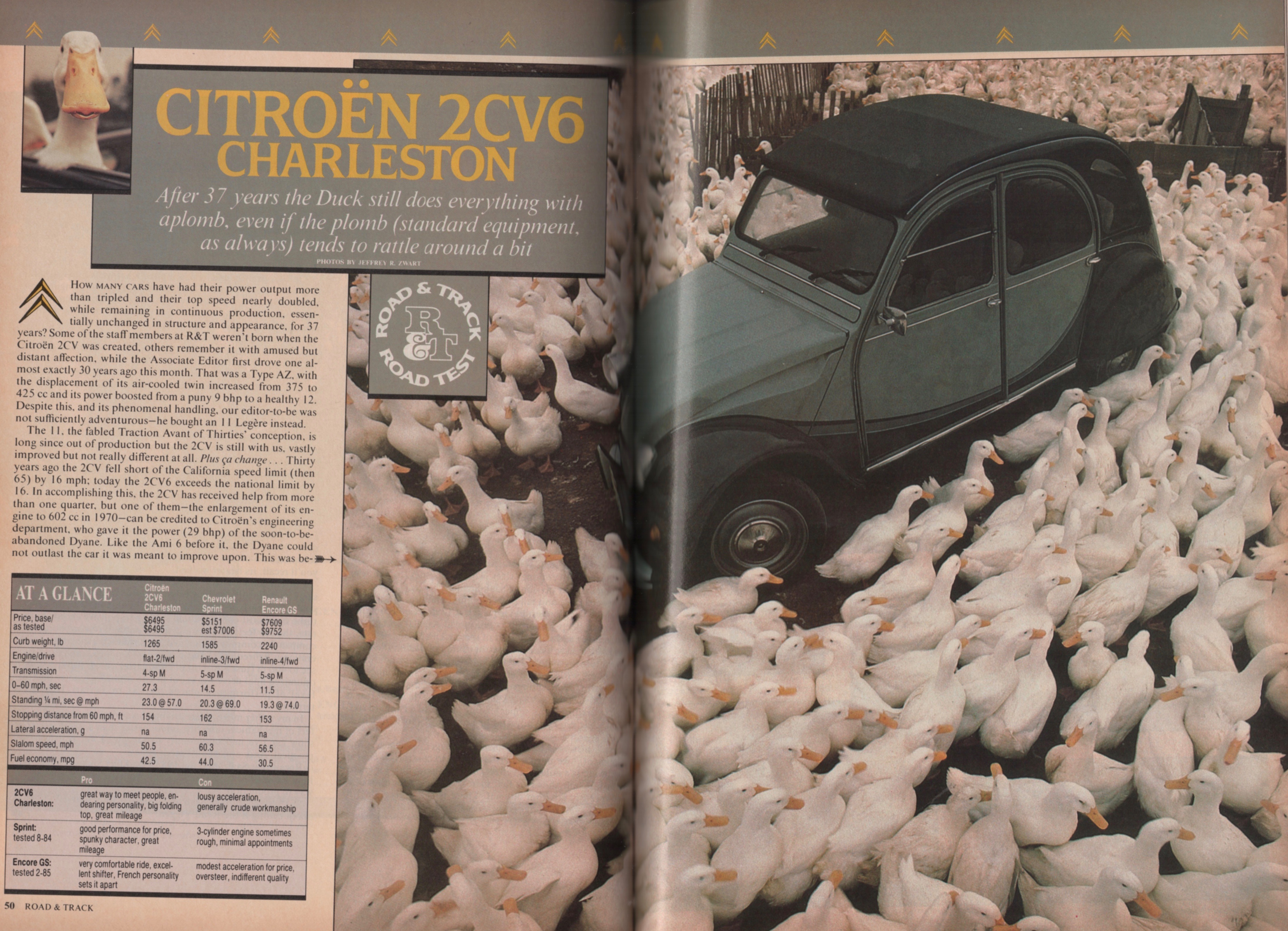 Almost three decades later, the magazine wrote, “After 37 years the Duck still does everything with aplomb, even if the plomb (standard equipment, as always) tends to rattle around a bit.”
