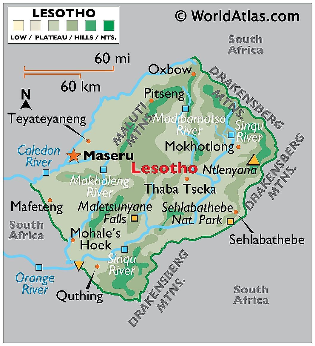 WorldAtlas describes Lesotho’s colonial history with the Dutch and British. Today, WorldAtlas says, “Lesotho is a poor, largely agrarian country. The country’s GDP per capita is just $1,088, and only 25% of the country’s people live in urban areas. Lesotho does, however, have a literacy rate of 85%, which is one of the highest rates on the African continent.”