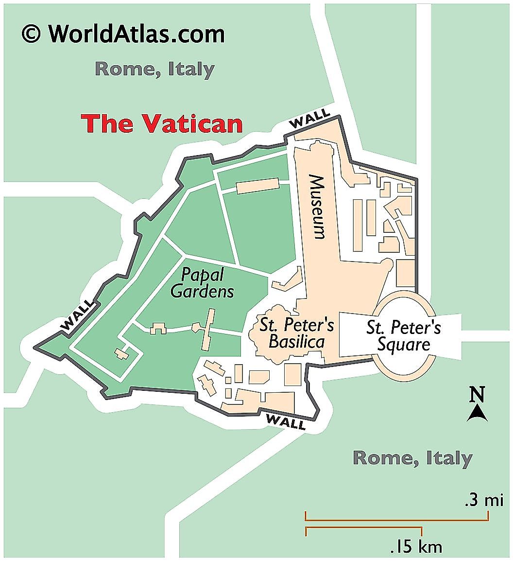 Vatican City. This seat of the Roman Catholic Church is, at just 49 hectares, 121 acres, the smallest country the world. It’s also the least populated, with a population of less than 1000 people.