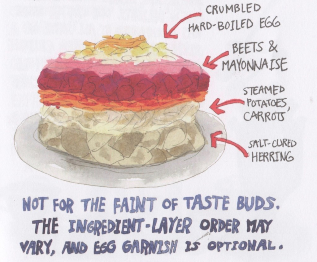 There she acquires a taste for Herring Under a Fur Coat: “I fell in love with this dish at a stolovaya before knowing what it was called, & when I learned its name I completely lost my mind. It tasted even better when I could savor its hilarious name along with its flavor!”