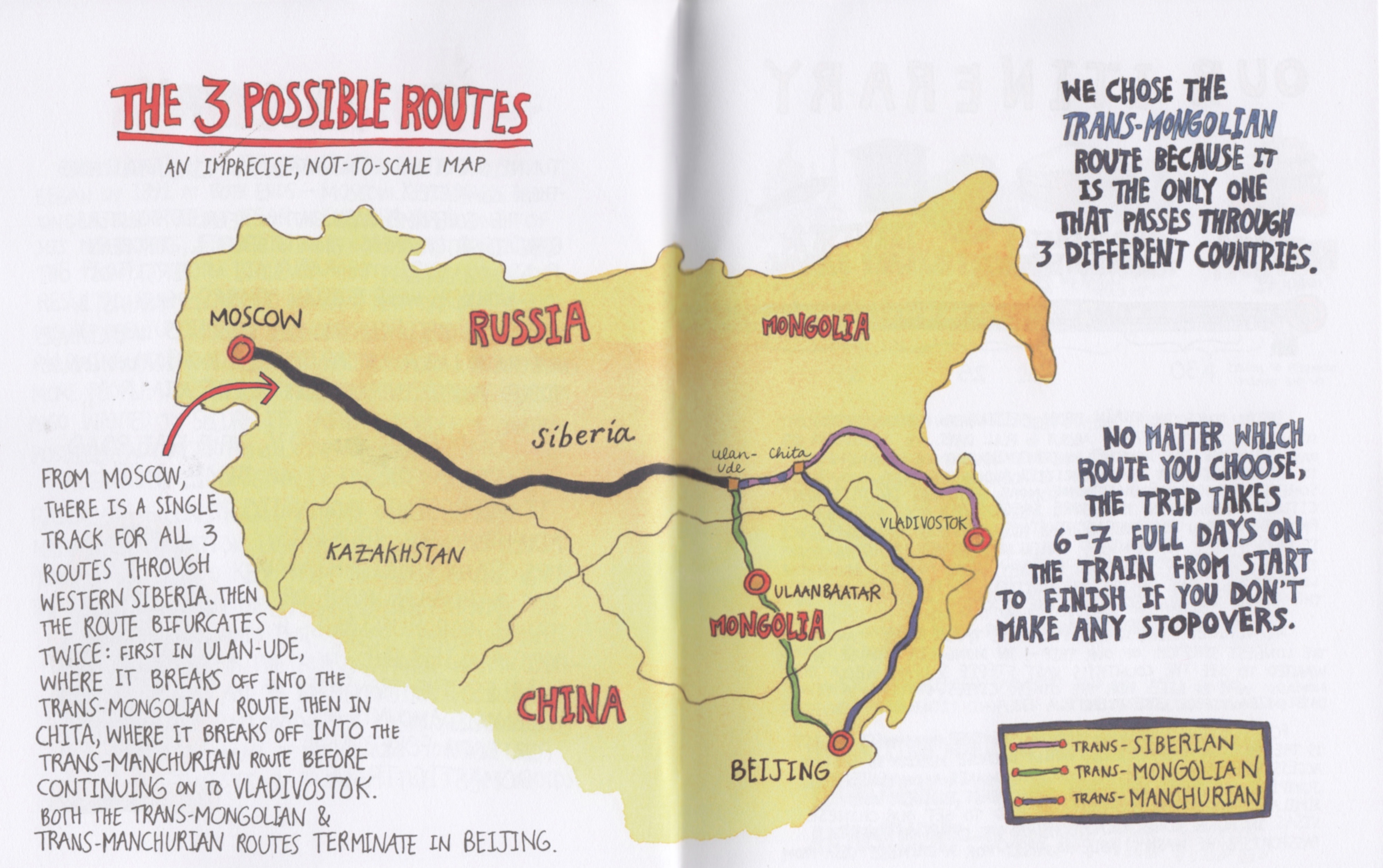 Today, though, on its way to Vladivostok it offers two spurs to Beijing, China, one of which travels through a third country, Mongolia.