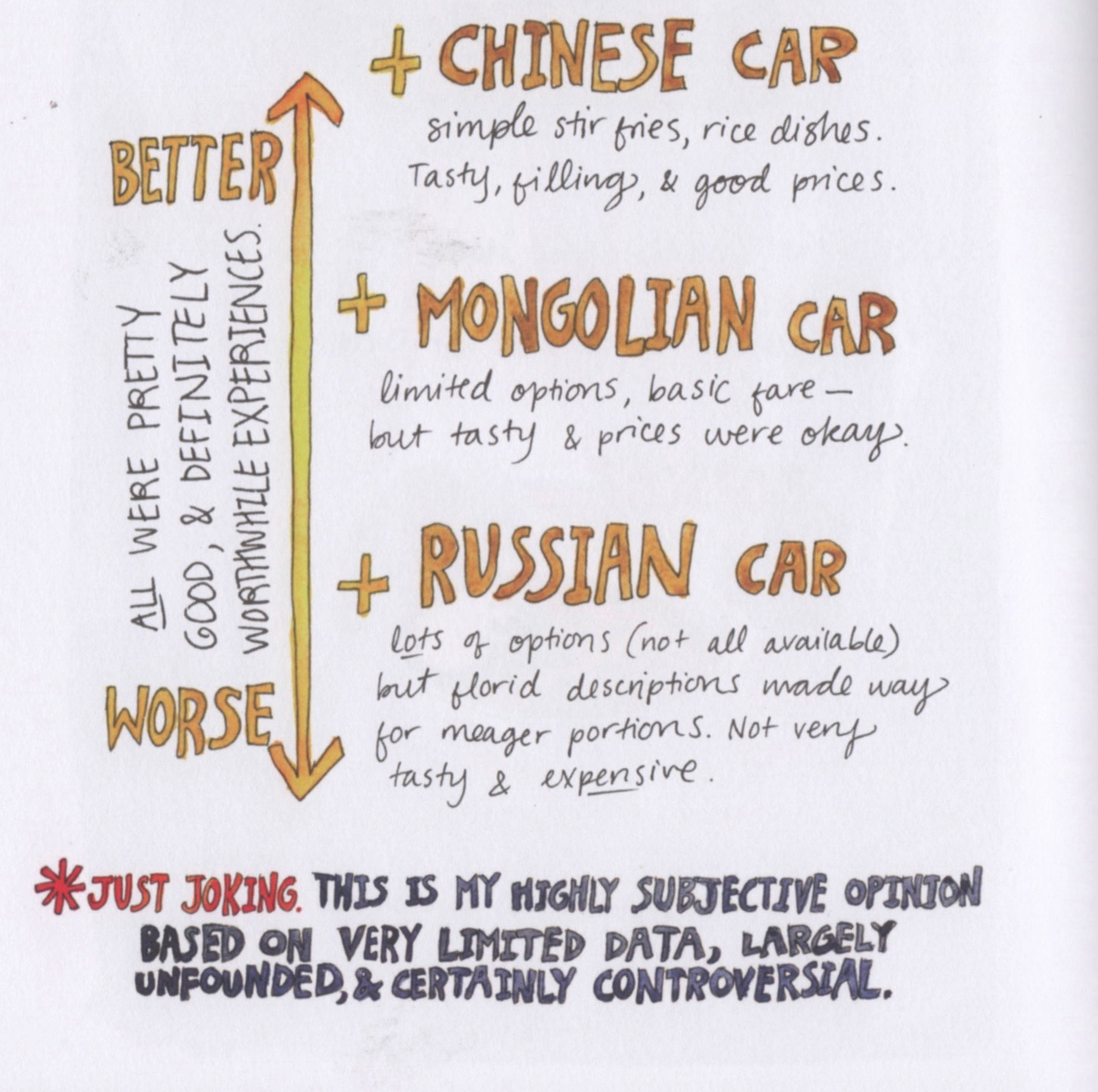 In retrospect, Emma provides “A Generally Accepted* Ranking of the Various Dining Cars (all Second-Class; no First-Class experience).”