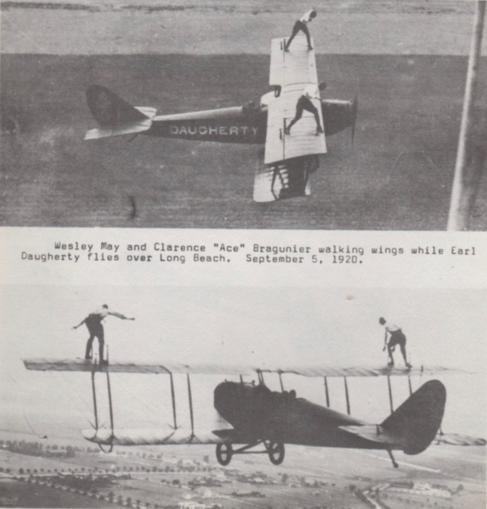 On September 5, 1920, for the first time in aviation history, he and his Stunt Men set two wing walkers at the same time on the same plane.