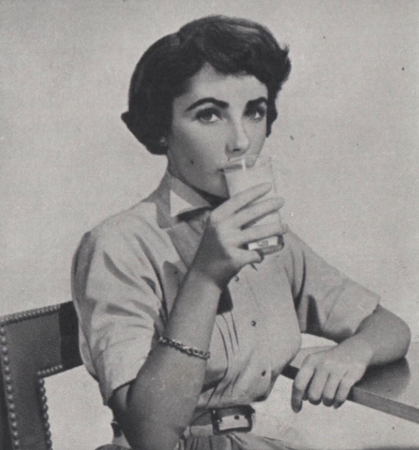 “ ‘Be a milk drinker,’ says gorgeous ELIZABETH TAYLOR, who should know about how to be healthy and beautiful.”