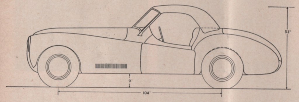 “Design,” Bond continued, “must include fenders [i.e., no hot rods?] , and headlights must be at least 24” from ground. Sports cars (for competition and regular use) only… no sport cars (jazzy-looking chrome jobs), please.