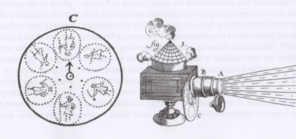 “Huygen’s invention of projection, or more exactly projection by the subtraction of light by a transparency, set the pattern for projection technology for centuries…. Huygen’s was the basic projector design used from the seventeenth century into the Glass and Celluloid Cinema Eras until the advent of the Digital Cinema Era and the DMD image engine.”
