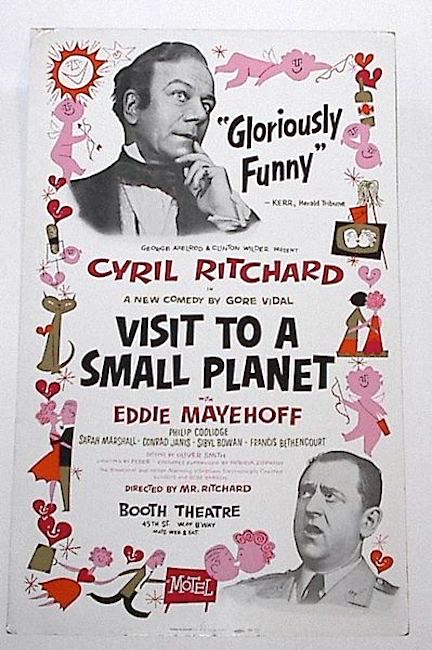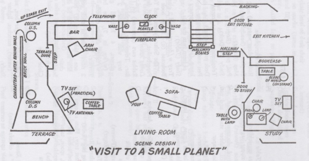 MANY PLAYWRIGHTS PREFACE their dialogue with only brief descriptions of scenes and characters, the interpretation of the production left largely to the director. By contrast, Gore Vidal offered extensive details for his wonderful satire Visit to a Small Planet.