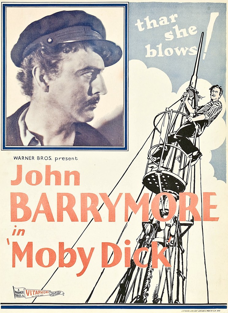 Earlier and Later Versions. The Sea Beast was a 1926 silent Barrymore rendering along the same lines: boy meets girl, boy meets whale, boy limps back to girl. Ditto for a lost 1931 German version, Dämon des Meeres, Demon of the Sea, co-directed by Michael Curtiz (who went on to direct lots of films that weren’t lost, Casablanca, The Adventures of Robin Hood, etc.).