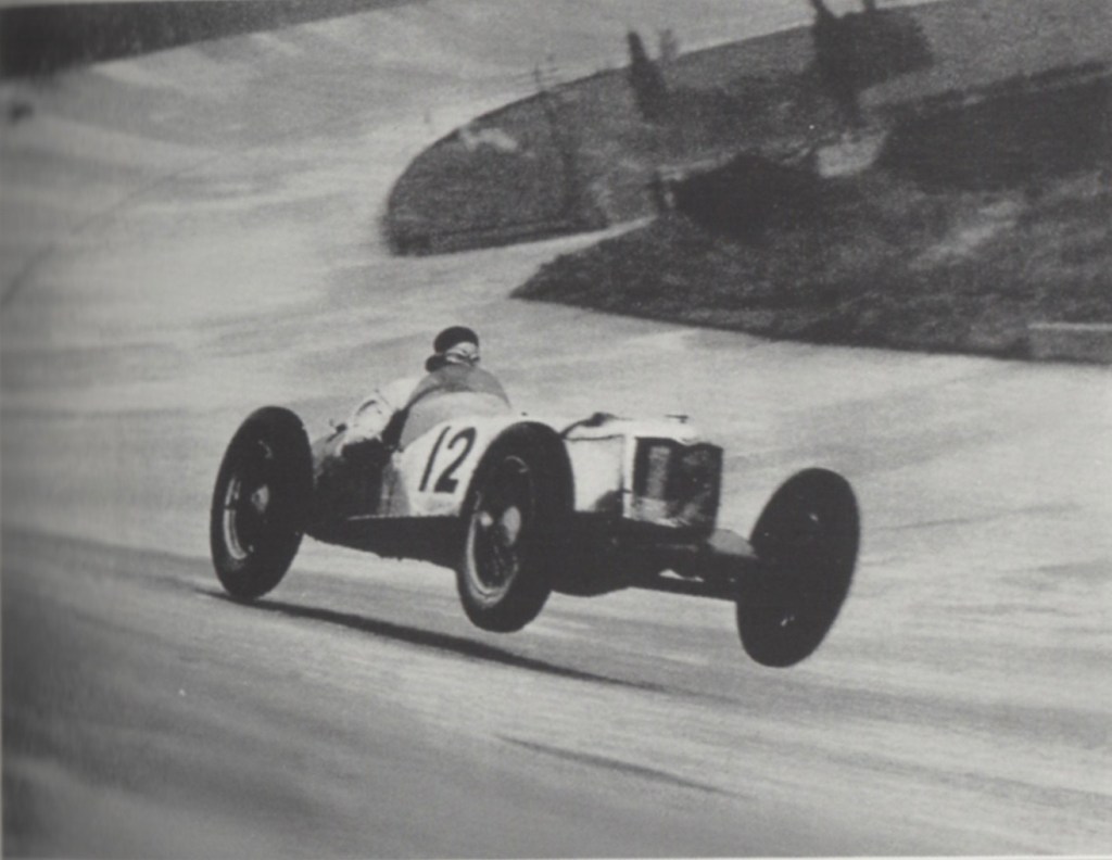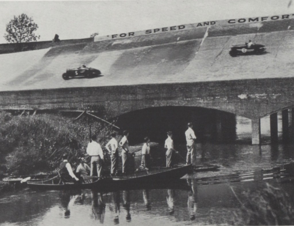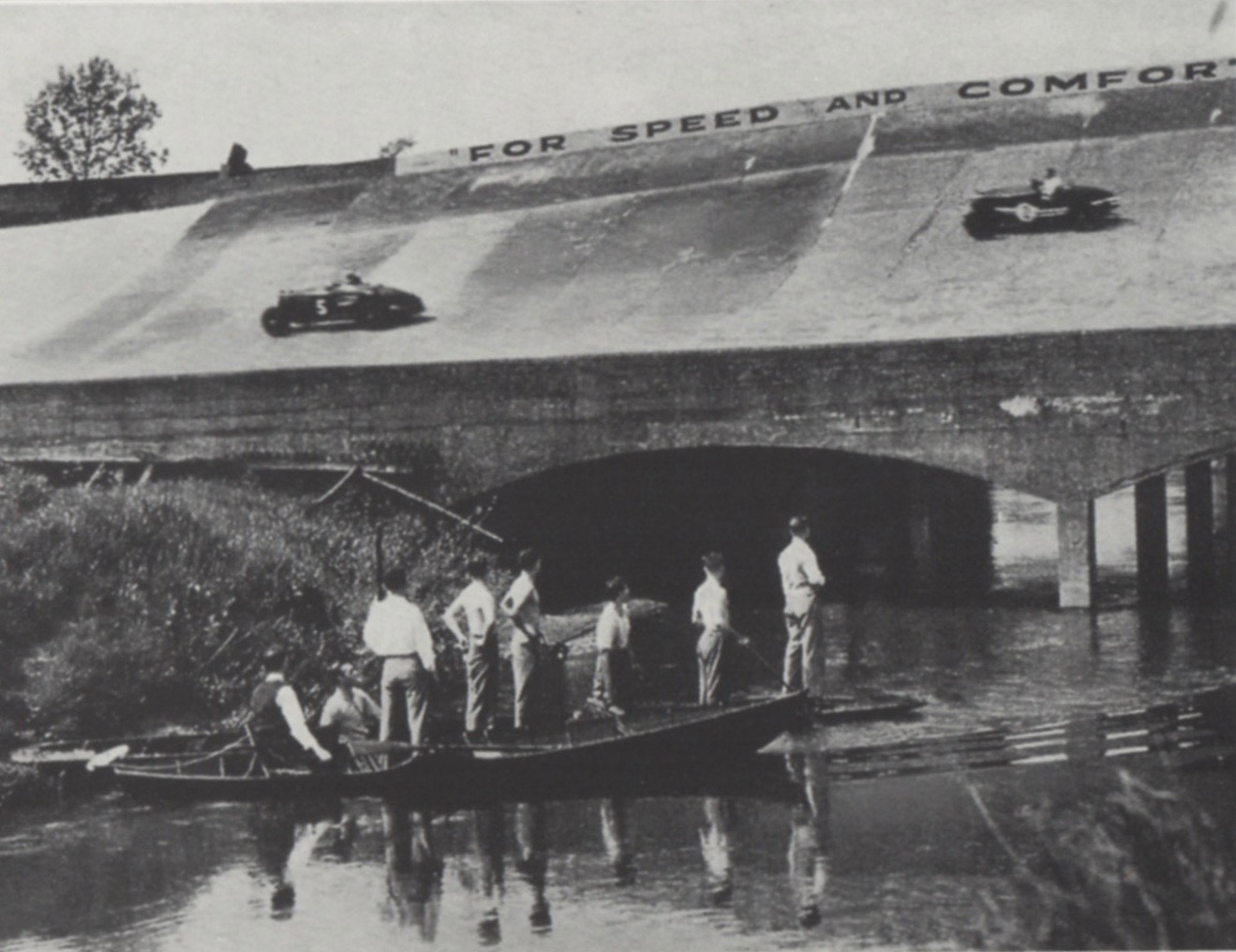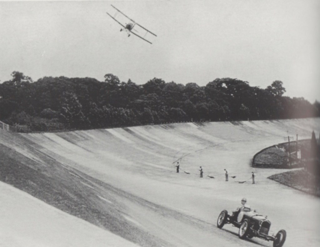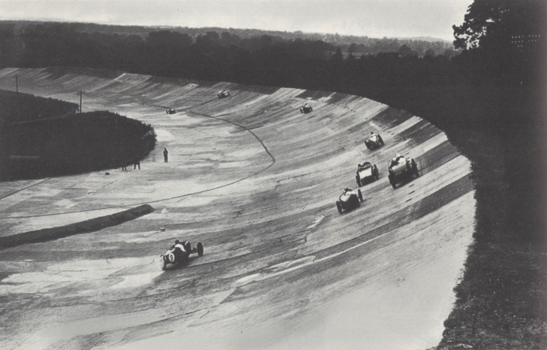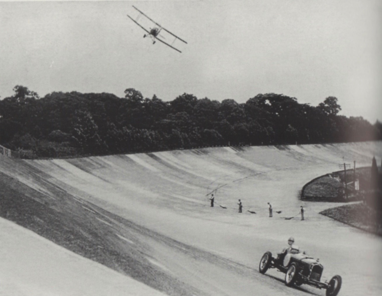 Race Day. Leigh-Bennett reported, “Brooklands on a racing day, in the ineffable loveliness of a warm spring afternoon, is strangely quiet at 2.20 p.m., with ten minutes to go. The silence is broken only by the bray of bookies in the distance, and the announcer’s voice as it ricochets off the loud-speaker…. One senses the worried working of those twenty-four brains under the crash helmets: for these are the moments of great decision: when to start up the engine: too soon and you oil up the plugs: too late—and you are left at the post….”