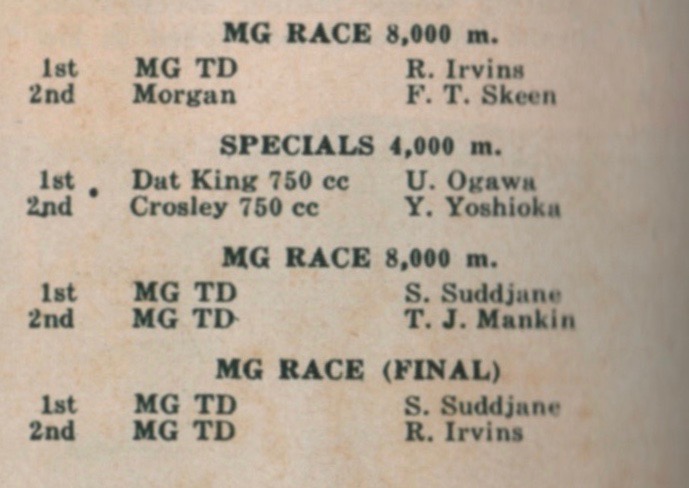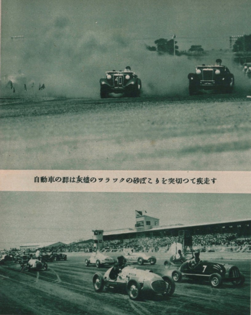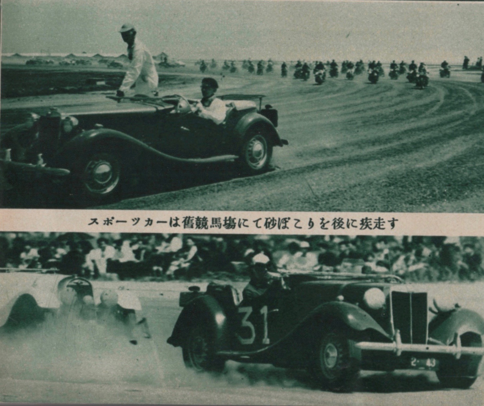 A 1951 Venue. Road and Track reported, “Many ex-horse race tracks have been converted from hay to gasoline. At Funabasi, Chiba, near Tokyo, such a track was the scene of an Annual Charity Race. Thick dust boiled from the cinder surface as enthusiastic drivers went tearing about in pukka dirt track style.”