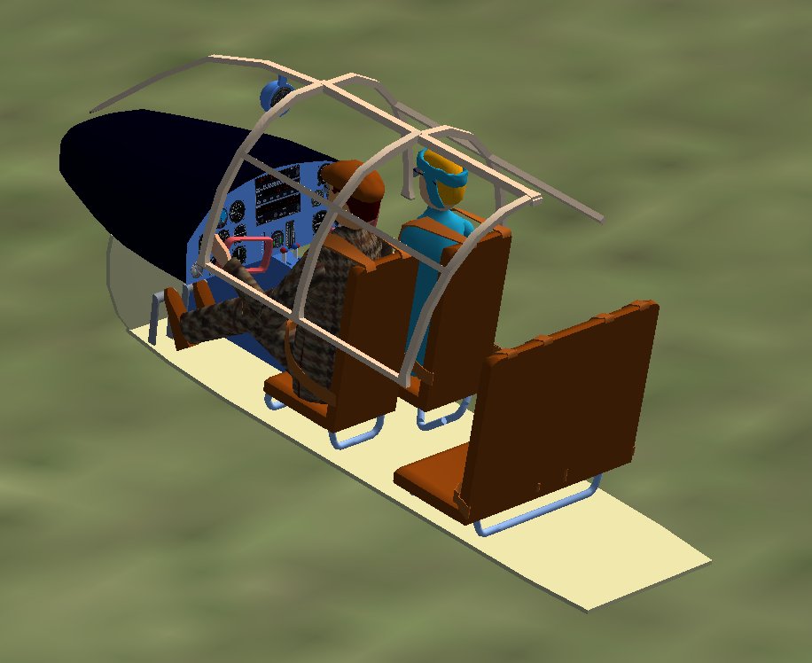 That Airy Cabin. The Aero 45 seats 4-5, with dual controls for those seated up front. The guy in tweeds and his lady friend are recycled from previous projects.