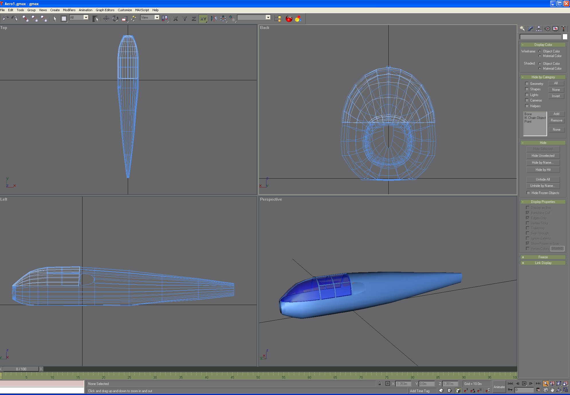 With GMax’s other Primitives, Box, Sphere, Cylinder, Plane, and Torus among them, the Aero gets assembled piece by piece.