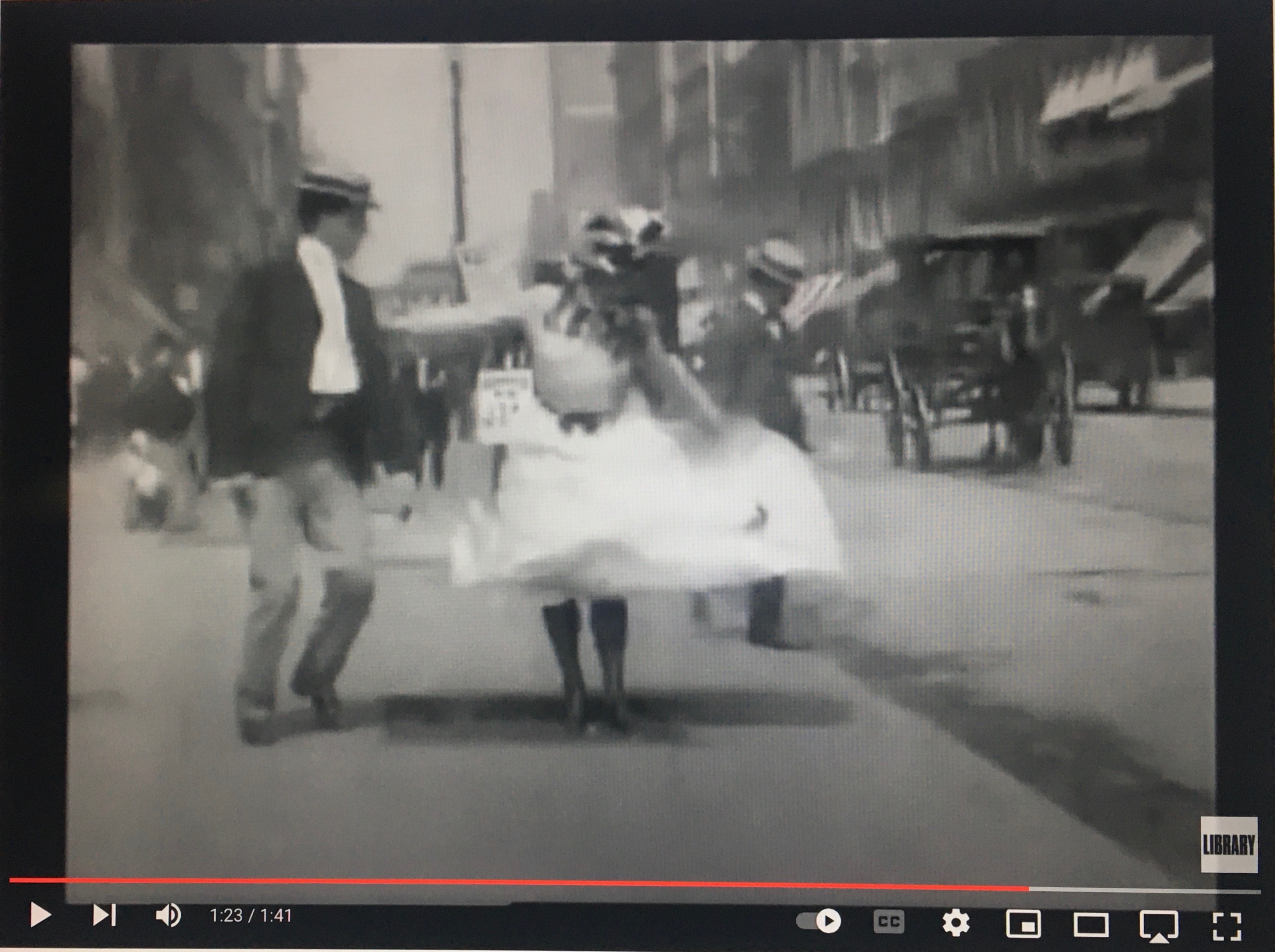 My favorite theory is supported by a 1901 nickelodeon film, a turn-of-the-century analog to Marilyn Monroe’s billowing dress in The Seven Year Itch, 1955.