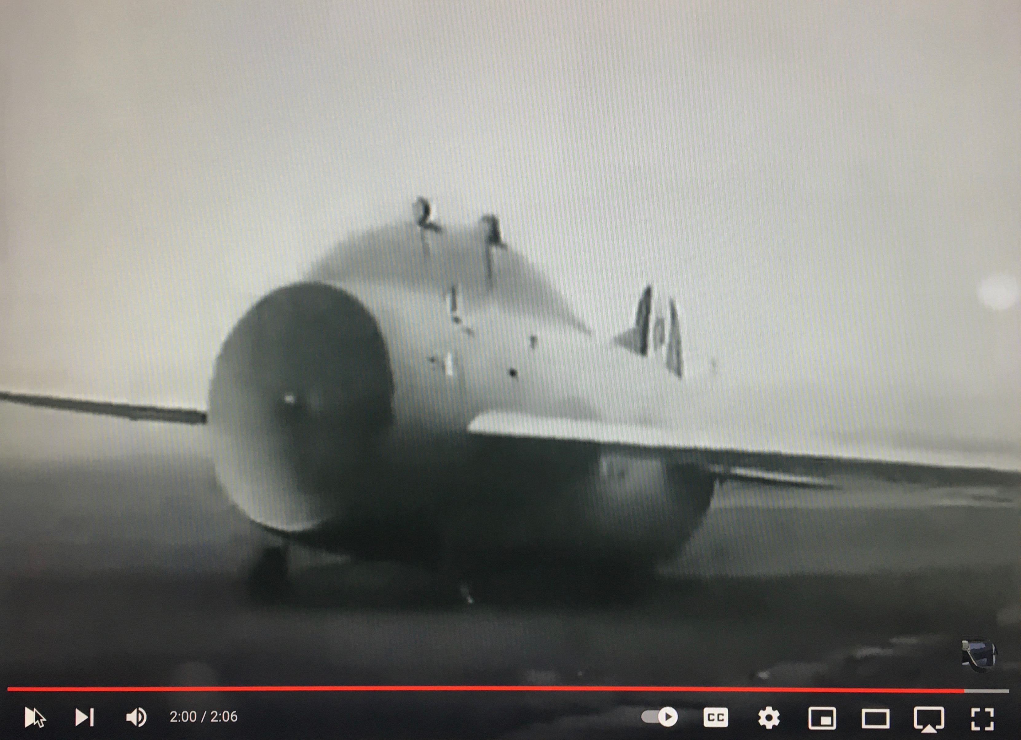 Quite amazingly, there’s film footage of this experimental aircraft in testing.