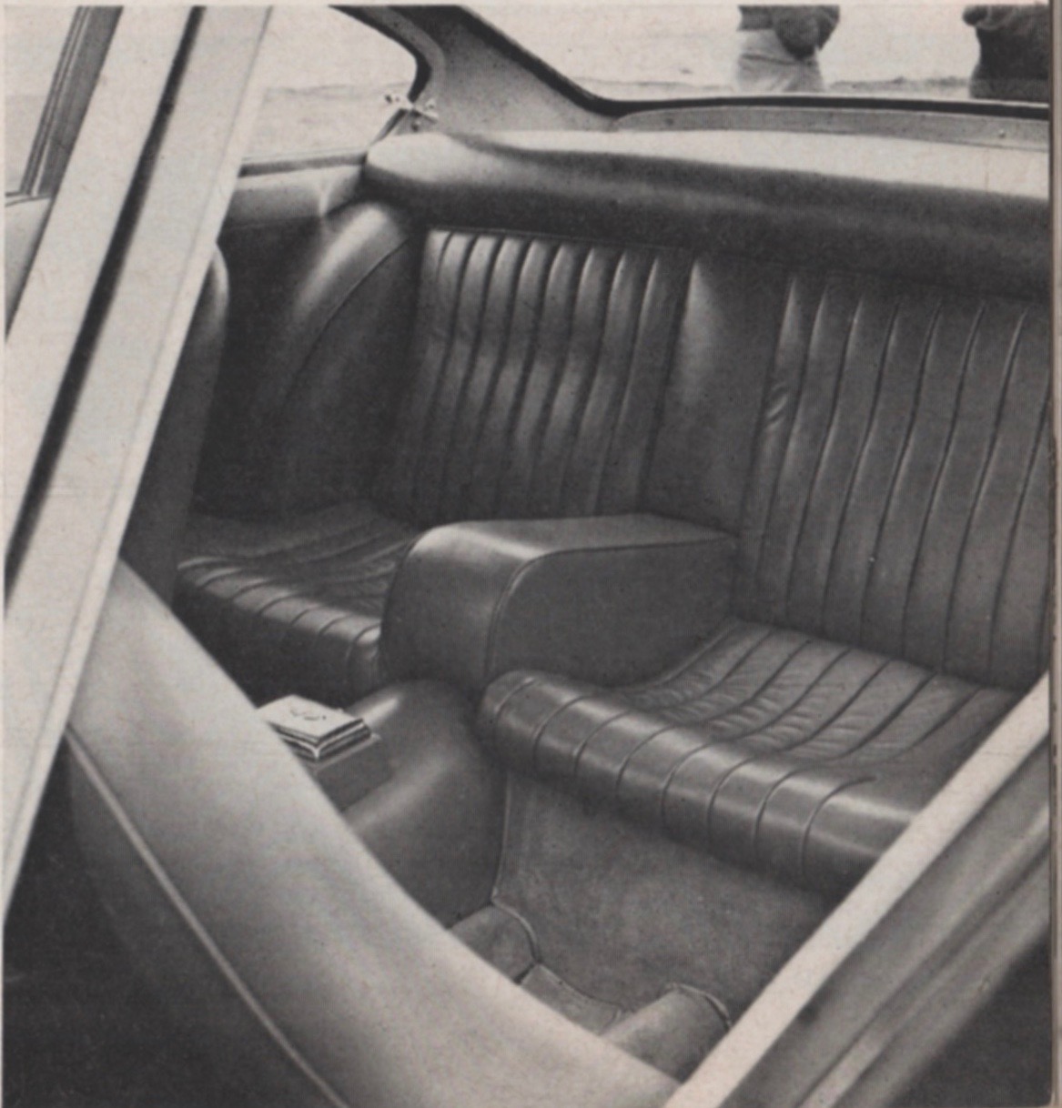 Accommodations. “The ride seems to have been softened up somewhat over the 2-passenger coupe which could be caused by the little extra weight [3270 versus 3100 lb.] or it might be an illusion caused by the driver being farther forward and therefore closer to the axis of pitch. In any case, it is firm but not uncomfortable, and the more miles covered, the more one can appreciate the car’s superb roadability.”