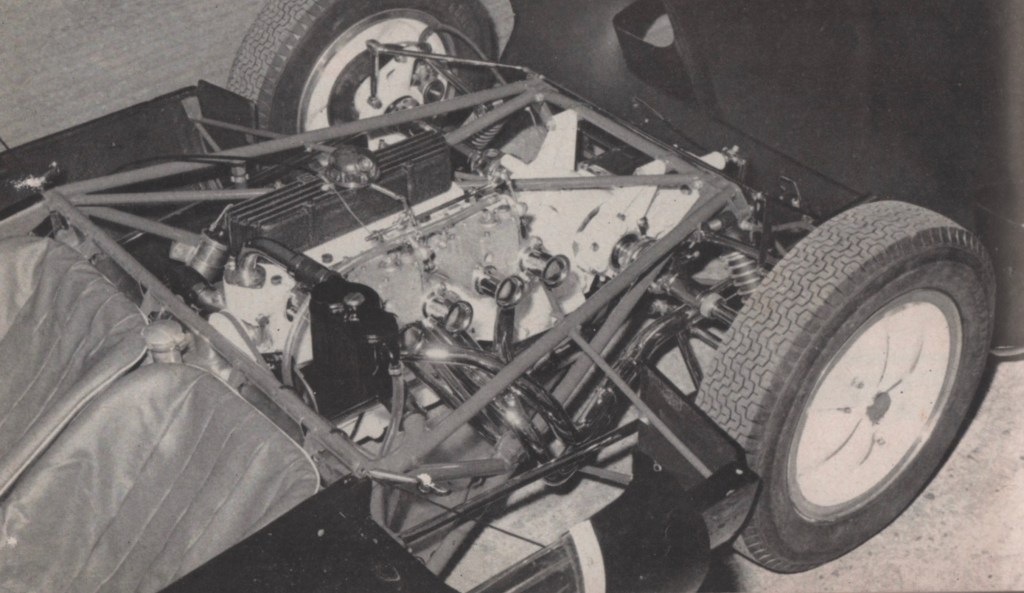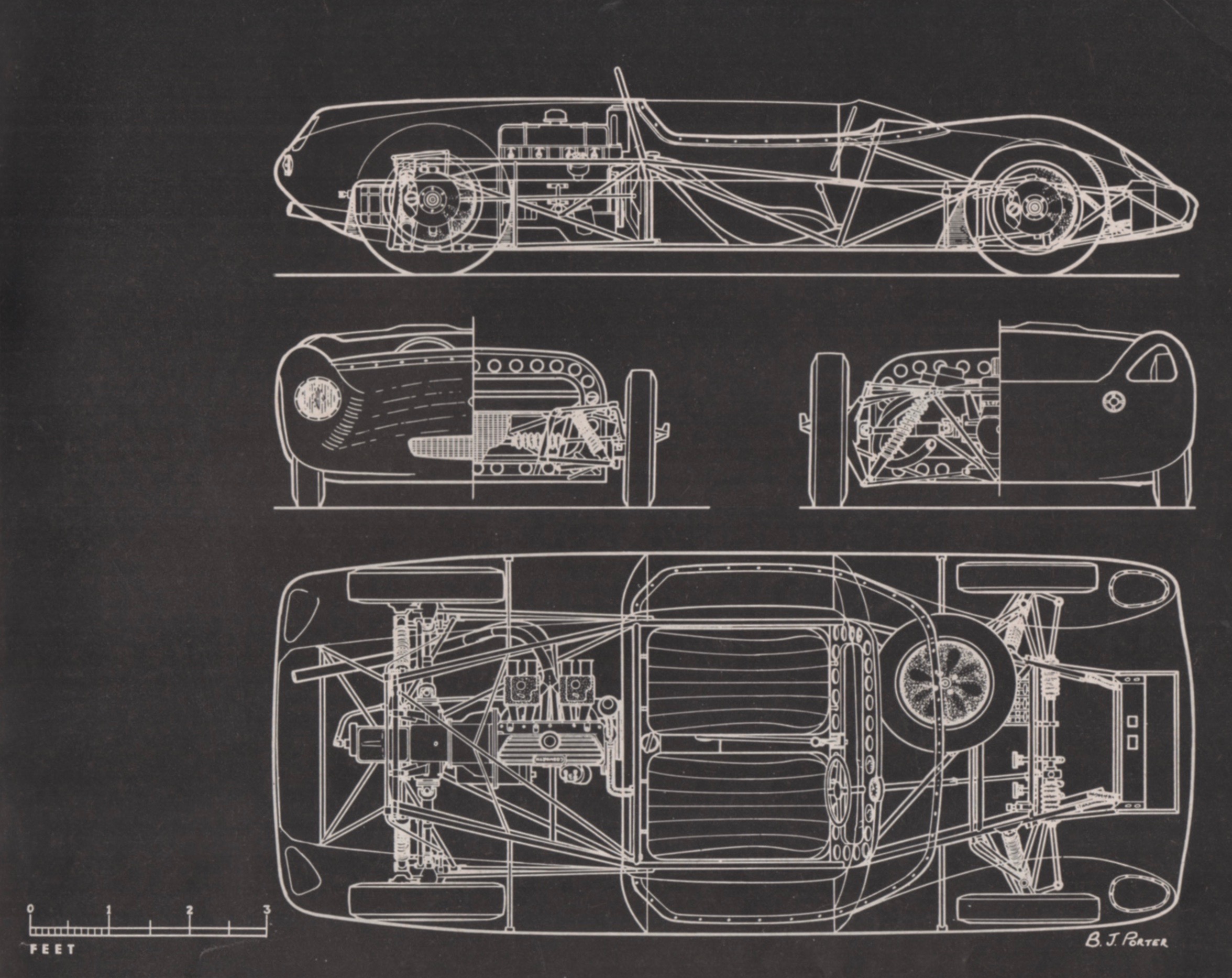 Appendix J Bodywork. International motorsports was still reacting to the 1955 Le Mans tragedy, and Phipps noted, “The bodywork, of resin-bonded glass-fiber, complies with Appendix J. Group IV, 1962, in respect to windscreen height, luggage space (alongside the engine) [my italics, not Phipps’], ground clearance and turning circle.”