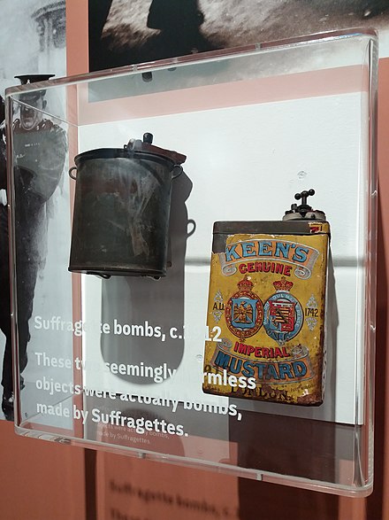 “The first attack on St. Paul’s,” Wikipedia recounts, “occurred on 8 May 1913, at the start of a sermon. A bomb was heard ticking and discovered as people were entering the cathedral…. Had it exploded, the bomb likely would have destroyed the historic bishop’s throne and other parts of the cathedral. The remains of the device, which was made partly out of a mustard tin, are now on display at the City of London Police Museum.”