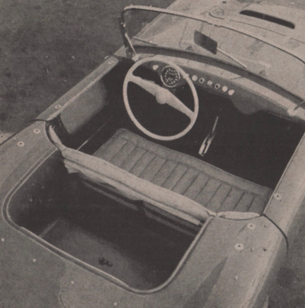 R&T continued, “Once inside, conditions improve. There is lots of foot room around the pedals and on the seat, though shoulders are cramped with a passenger aboard. The windshield is adequately high. The seat, covered with plastic, is suspended on broad rubber strips from a tube frame. For more or less distance from the pedals and wheel, the strips can be loosened or tightened.”