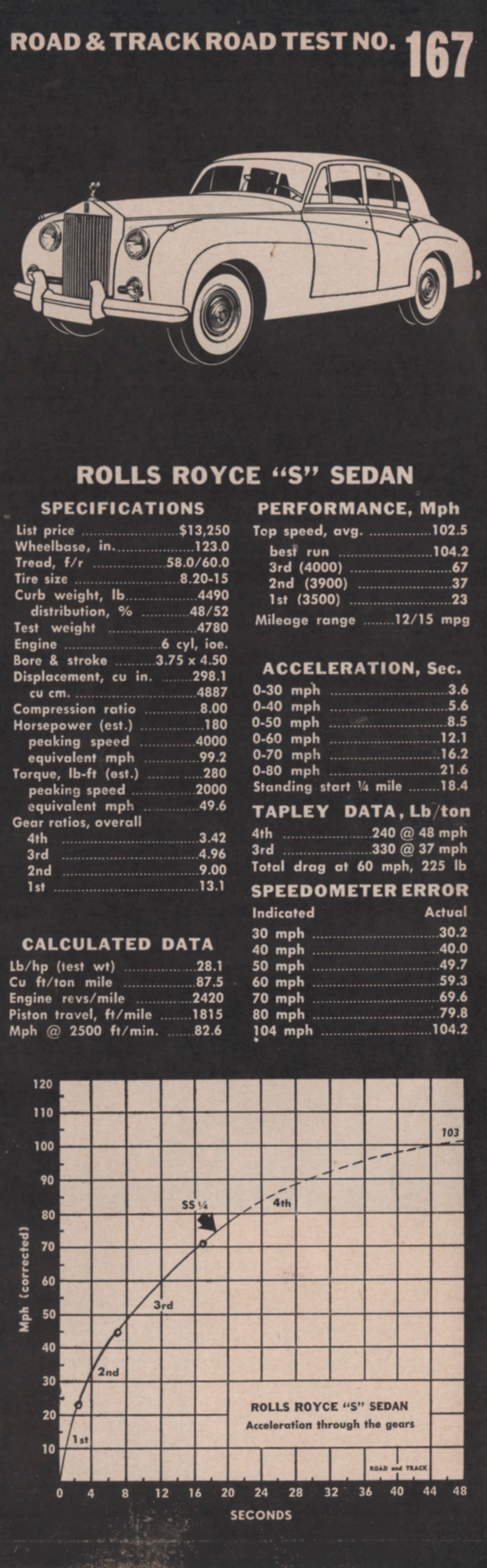 And What of Custom Coachwork? The magazine noted, “And remember, too, the advent of a standardized body in place of having all bodies built to order has alone accounted for an overall cost savings of nearly $5000 per car…. However, if you want a custom body on a Rolls-Royce, the firm will supply the Silver Cloud chassis with a choice of a standard (123-inch) or long (127-inch) wheelbase, or you may have the 133-inch Silver Wrath.”