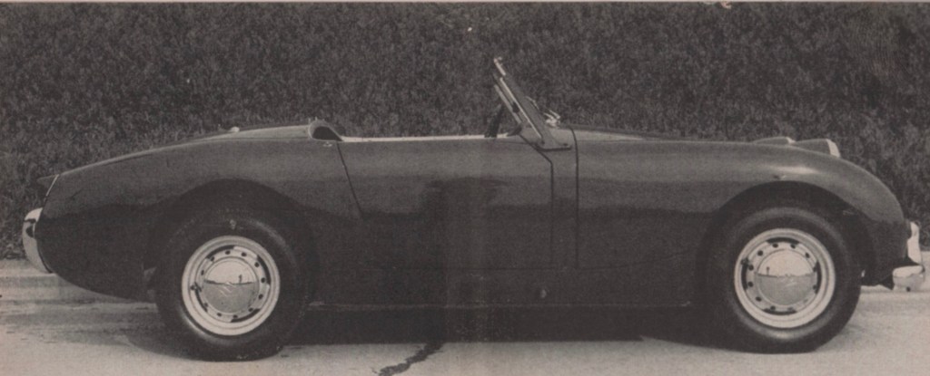 R&T continued, “Technically, the new low-priced sports car is to be known as the Austin-Healey Sprite. It is not quite clear why: The car wasn’t designed and will not be built by Donald Healey, and the only previous Sprite was a Riley model built before the war. Mechanically, the new Sprite is more Austin than anything else, with engine, gearbox, front suspension and rear axle all being developed from components originally found in the Austin A-30 (now the A-35).”