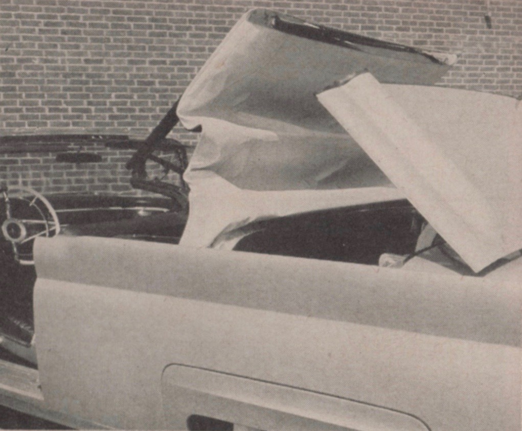 A Nautical Benefit. “Incidentally,” R&T reported, “what appears to be an enormous trunk space is somewhat misleading. The folded top takes up perhaps 1/4 of the volume, with almost another 1/4 occupied by the gas tank and spare tire. Nevertheless, there is still enough room in the trunk for an 8-foot dinghy.” ds