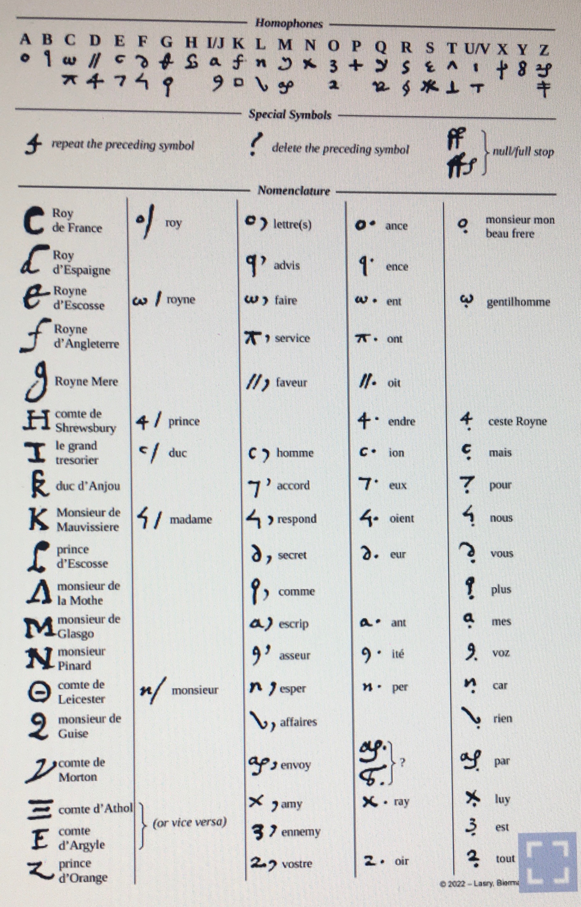 A Youthful Royal Cryptographer. Treisman quotes codebreaker Lasry: “Enciphering letters was common for monarchs, nobles and diplomats at the time, Mary included. At the age of 9, she was taught how to write in cipher. Throughout her life, she made extensive use of ciphers, especially while she was captive.”