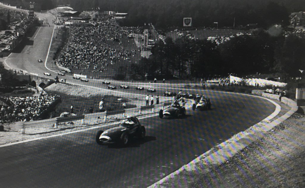 Jenk’s example of such a driver “moment” involved Maurice Trintignant at the Belgian Spa circuit: Trintignant “was going up the climbing sweep of L’Eau Rouge bend when the two rear wheels lost adhesion and he spun through two complete revolutions at some 70 miles per hour, and through the final 90º the car had almost lost all forward momentum.”