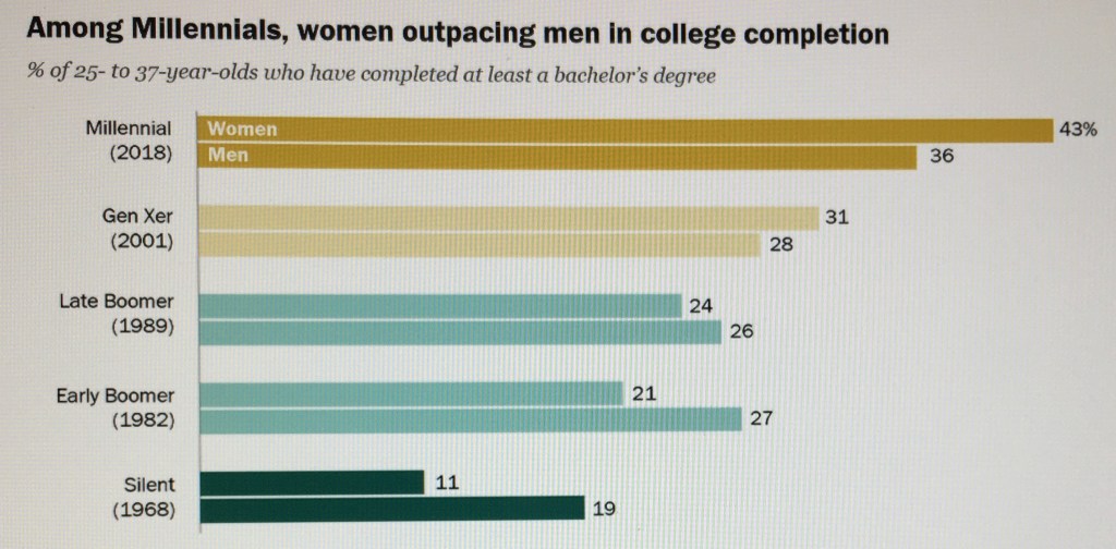 But Not Rolling in Dough. Exploding Topics notes, “Millennials are the most educated generation ever. More than one-third of Millennials overall, and two out of five Millennial women, have a college degree.”