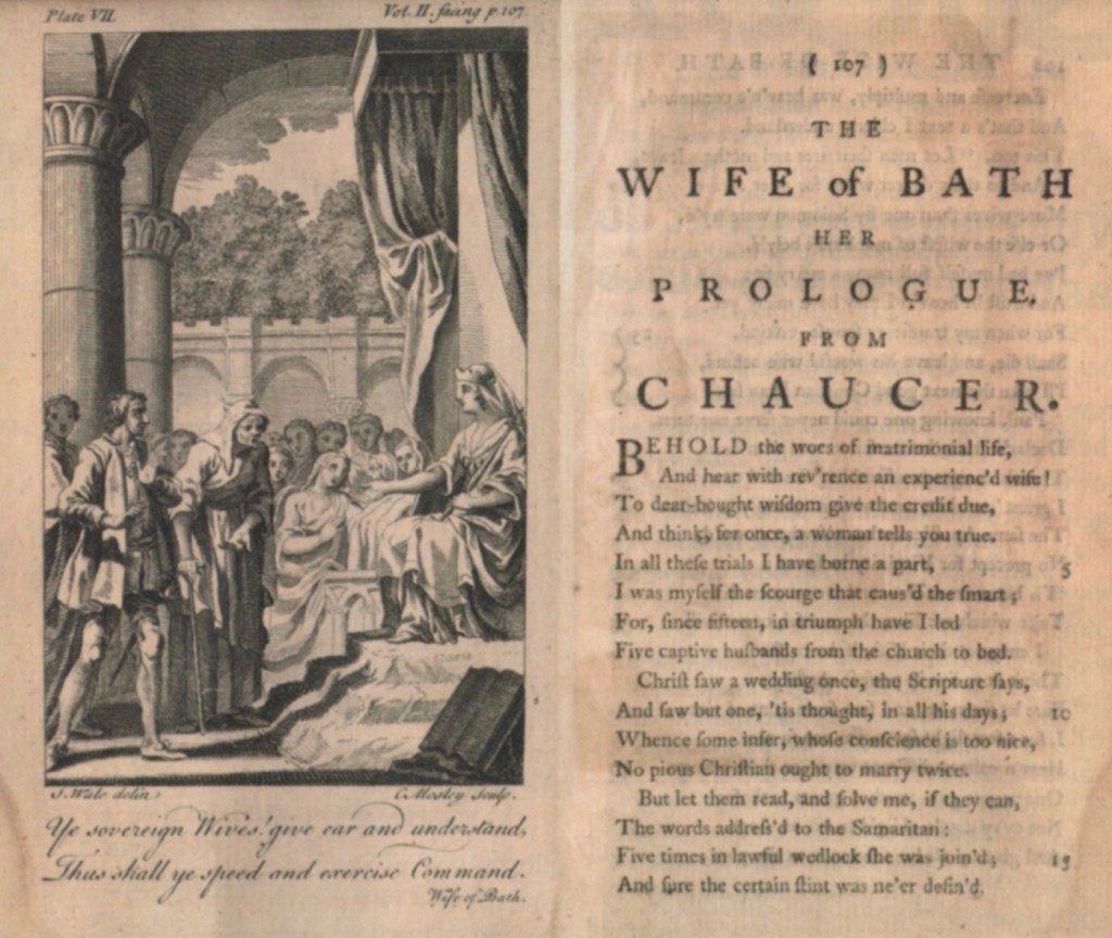 The Original. This, of course, encouraged me to seek out the original (adding to my “Whan that Aprille…”). Following her husband’s bier, Alison thinks of “Jankyn, oure clerk.”
