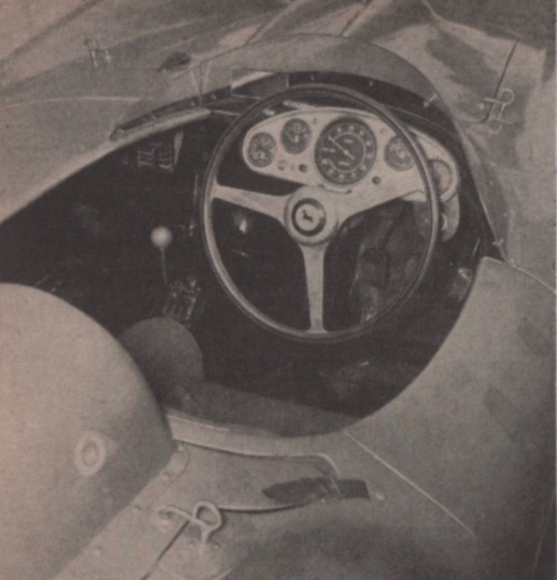 R&T amplifies, “These simplifications have two important advantages. First, by careful attention to detail considerable weight is saved, and secondly, the high roll center at the rear coupled with a very stiff independent front suspension gives excellent handling qualities on the slower type of road circuits so prevalent in the U.S.A.”